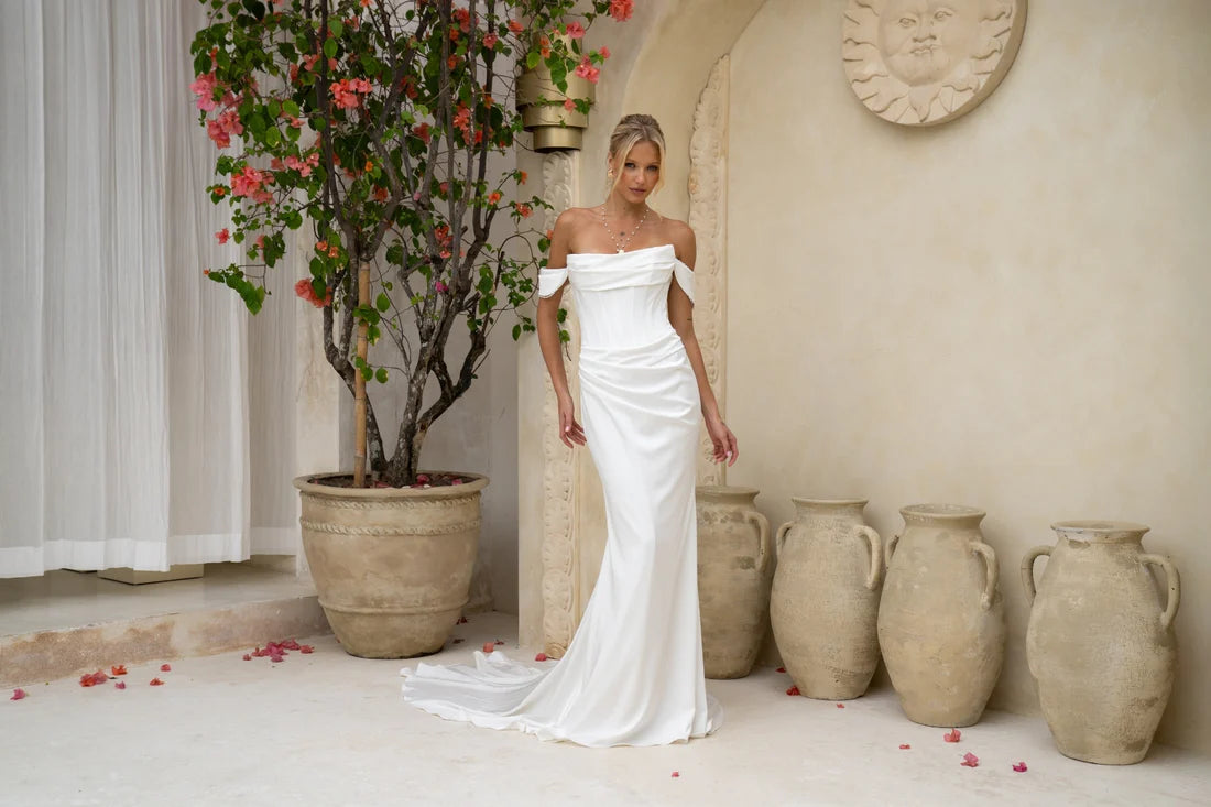 from our designer. These gowns are brought into our studio for a short time, giving local brides the opportunity to view and try on exclusive designs without leaving